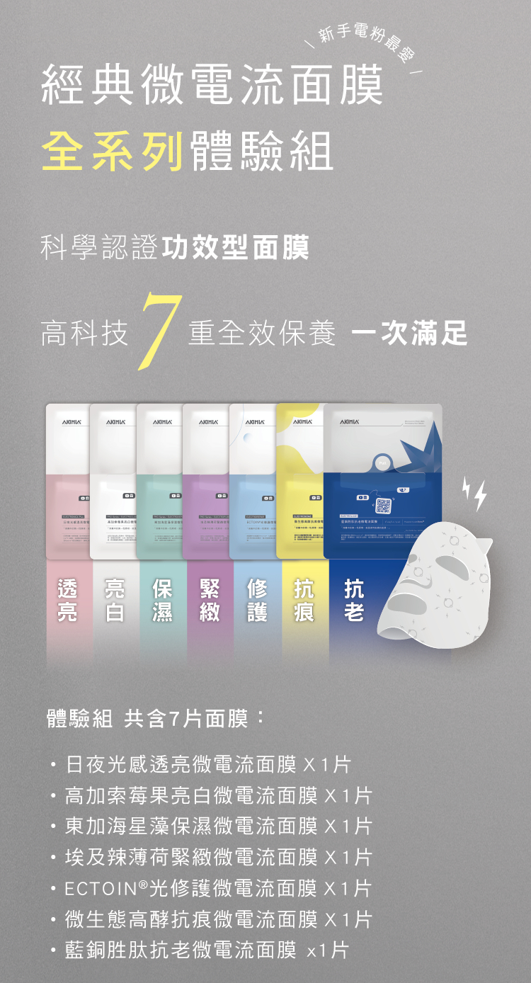 🔴 全系列7片體驗組包含:抗痕1片+修護1片+保濕1片+緊緻1片+亮白1片+透亮1片+抗老1片