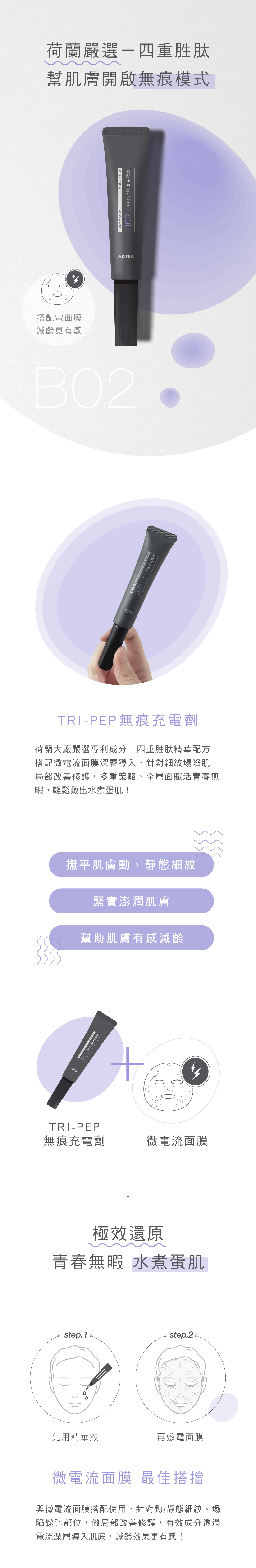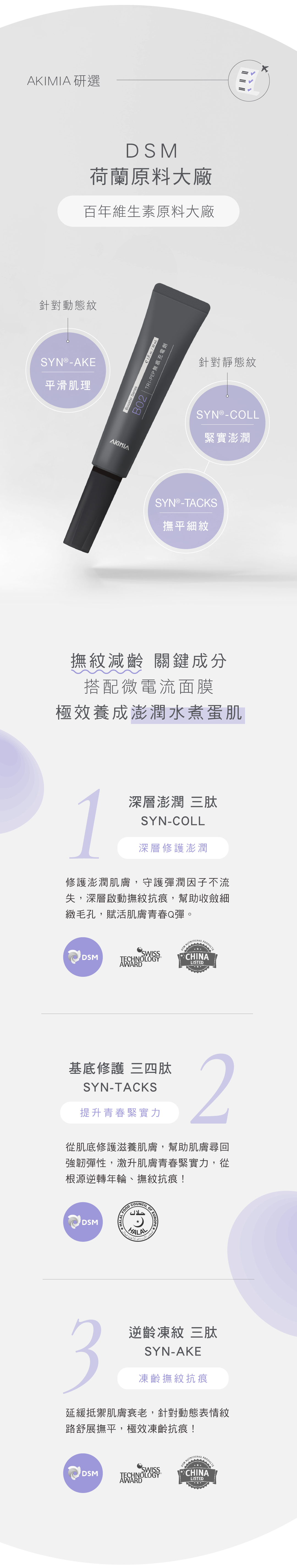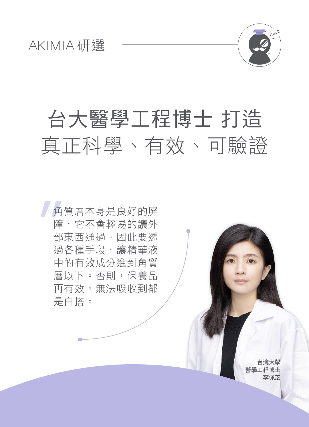 AKIMIA推薦每週三次,於化妝水後,針對局部細紋與塌陷狀況做塗抹,再搭配微電流面膜敷用,達到深層滲透、加倍功效的抗痕保養!