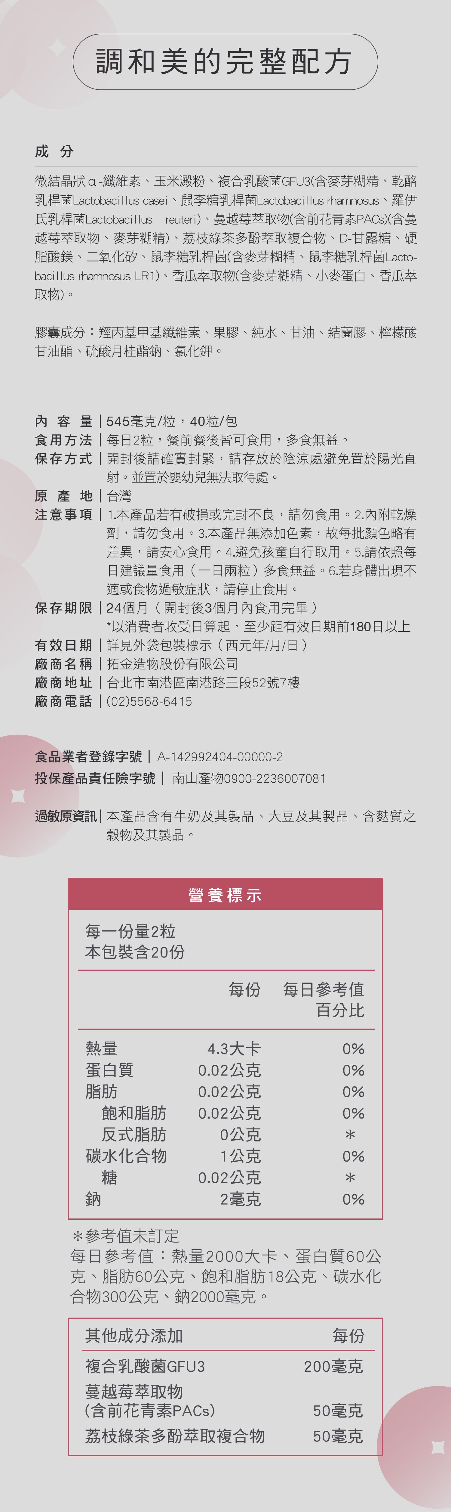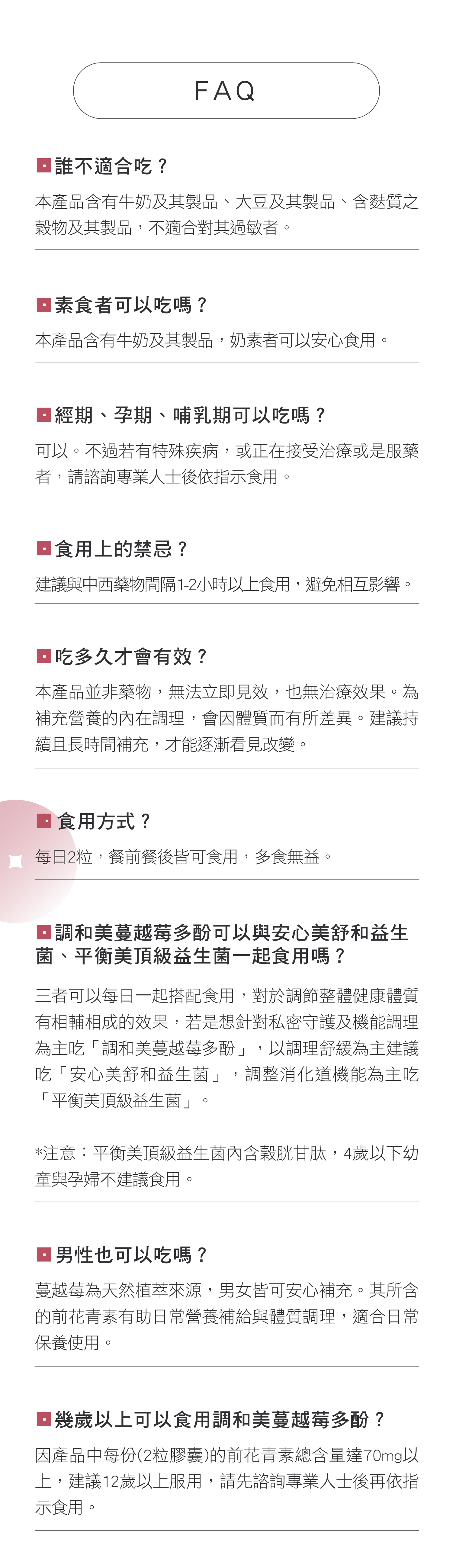 ■ 蔓越莓為天然植萃來源,男女皆可安心補充。其所含的前花青素有助日常營養補給與體質調理,適合日常保養使用。