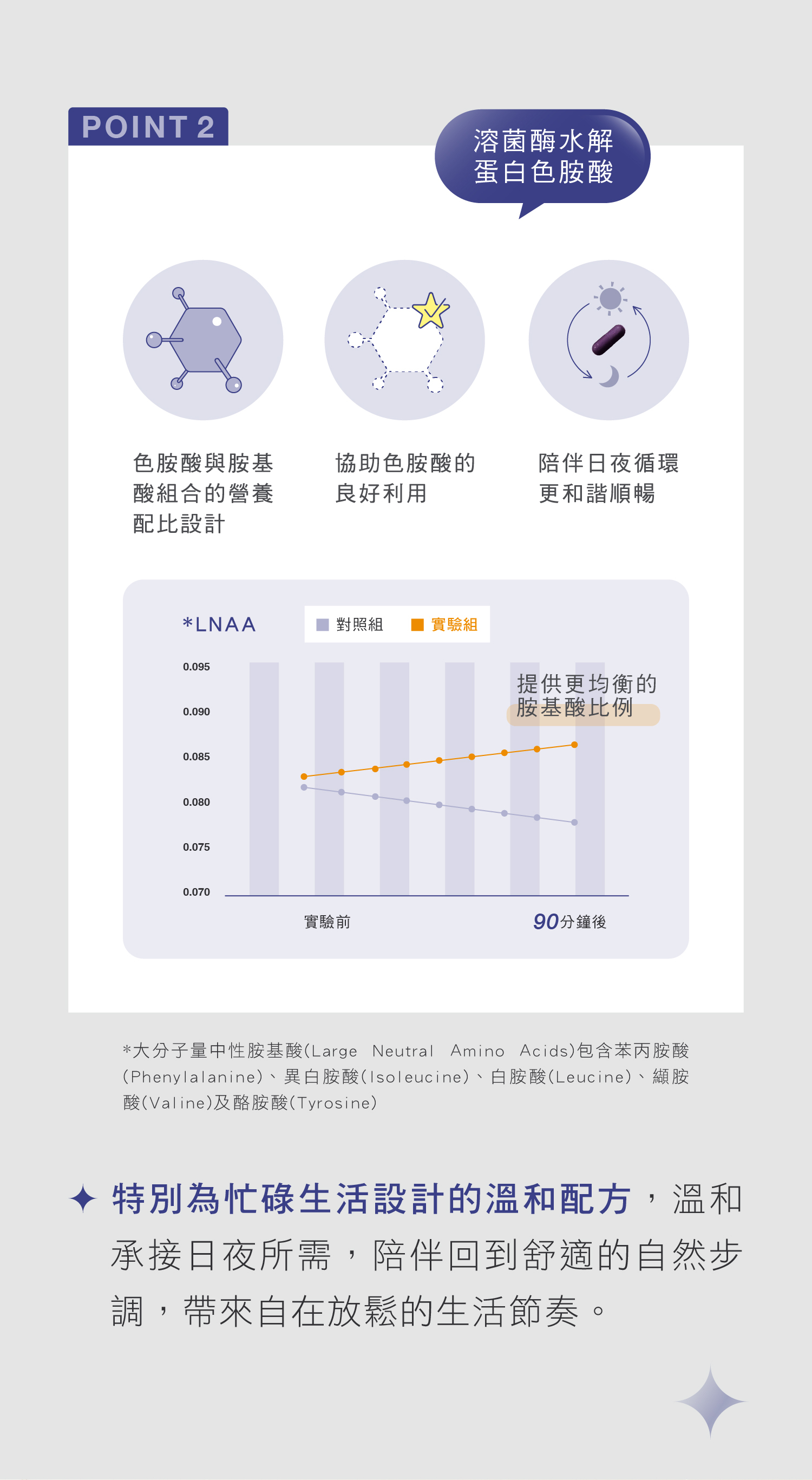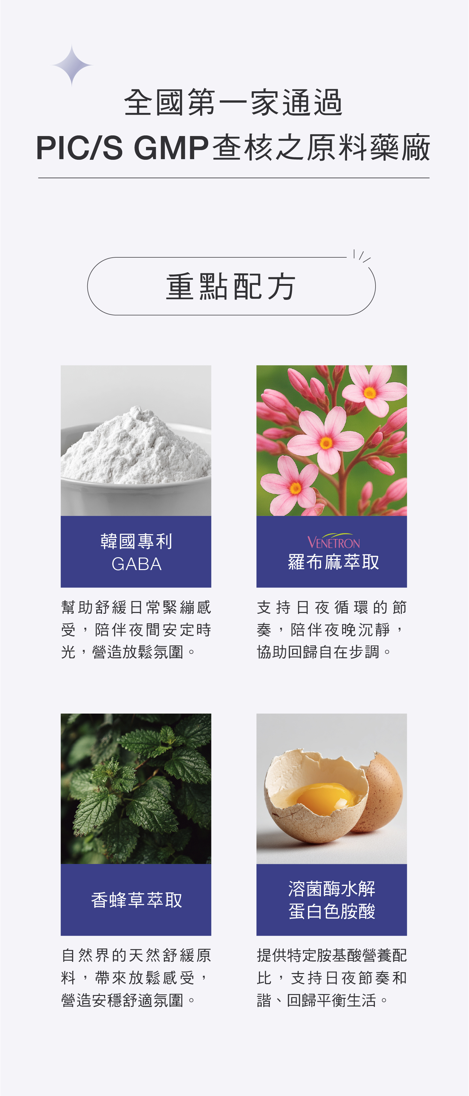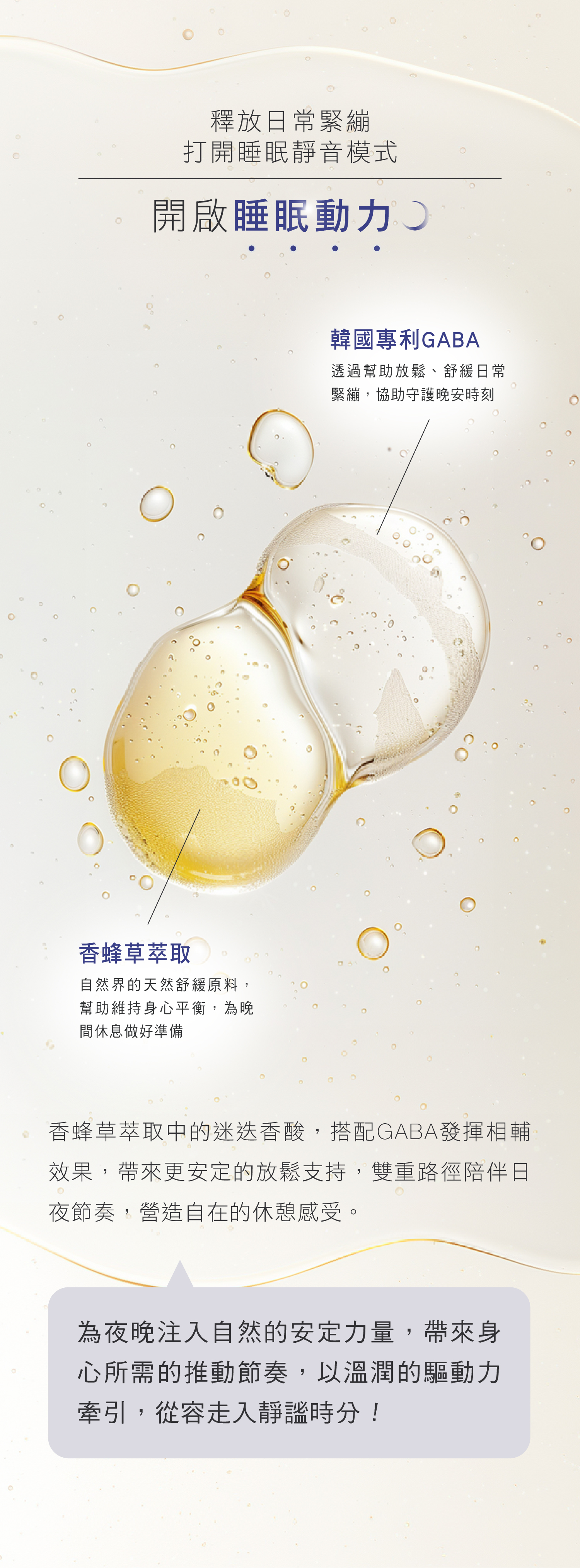 💤 溶菌酶水解蛋白色胺酸+香蜂草萃取多重協作,讓休息更具充電感