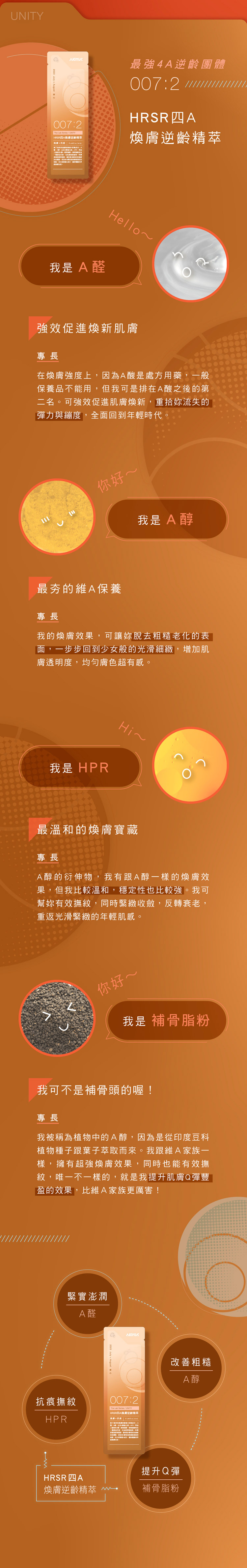 不建議使⽤「007:2 HRSR四A煥膚逆齡精萃」。此款精華因含有三種A酸衍伸物【包覆型A醇、A醛及HPR(A醇脂)】,雖然此三種A酸衍伸物本⾝「並無」臨床實驗數據佐證對於孕婦的危害,但建議先諮詢醫⽣。