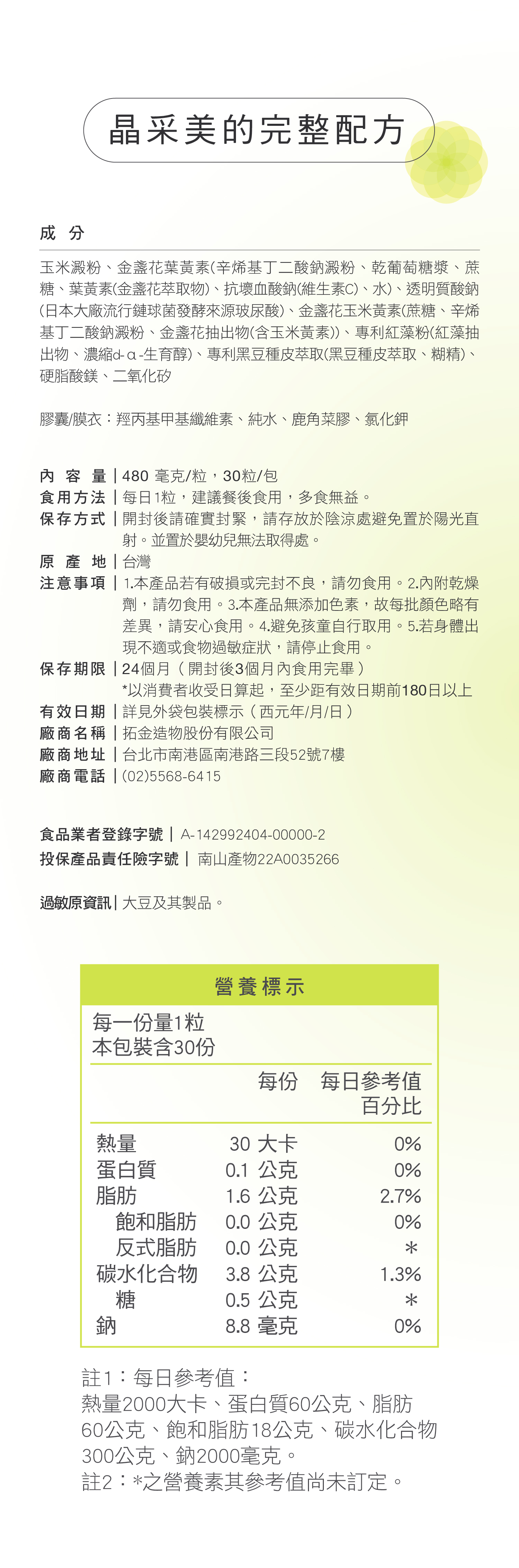 ■ 本產品含有大豆及其製品,對其過敏體質者應避免食用;素食者可以安心食用。