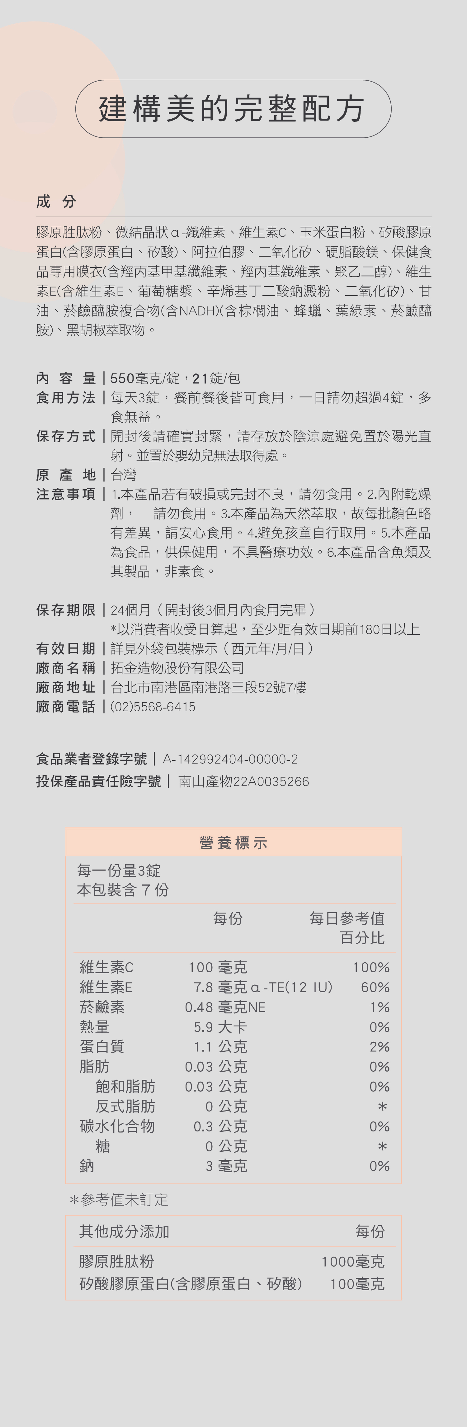■ 水光美 1包含20粒 / 膠原蛋白7日組 1包含21粒