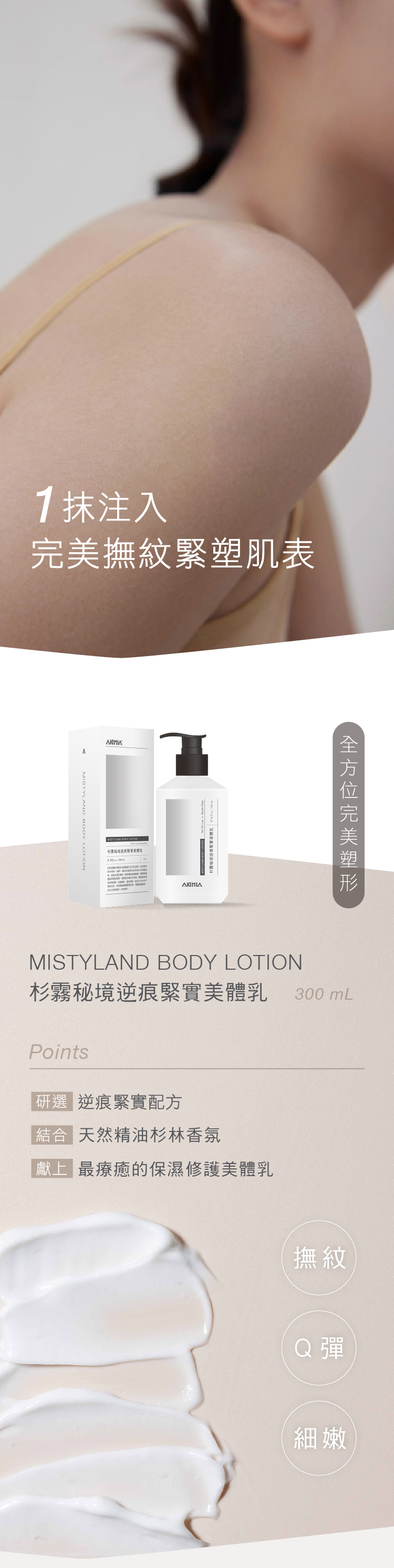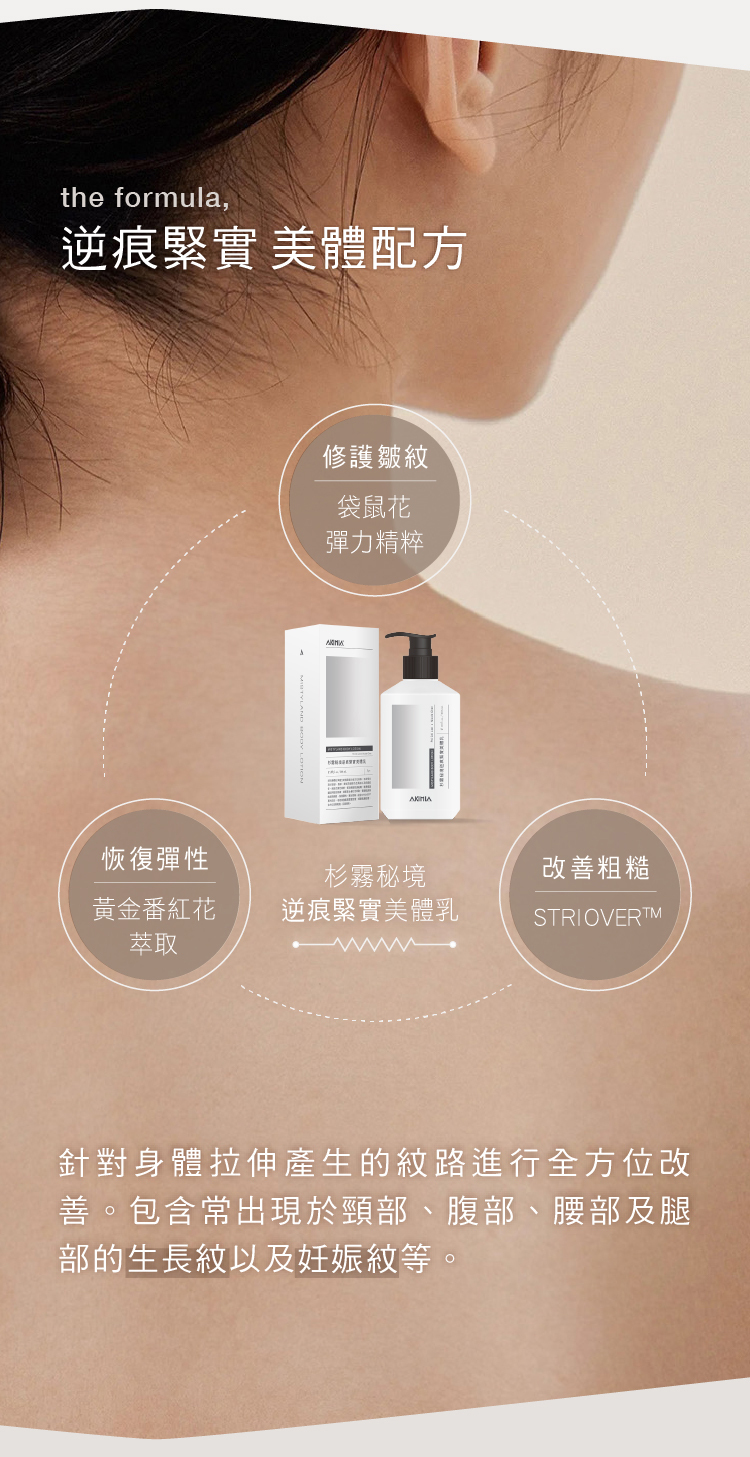 V 搭配杉霧秘境香氛|與法國ISIPCA獨立調香師 Nicole Chen 共同打造|獻上 最療癒的 逆痕緊實美體乳