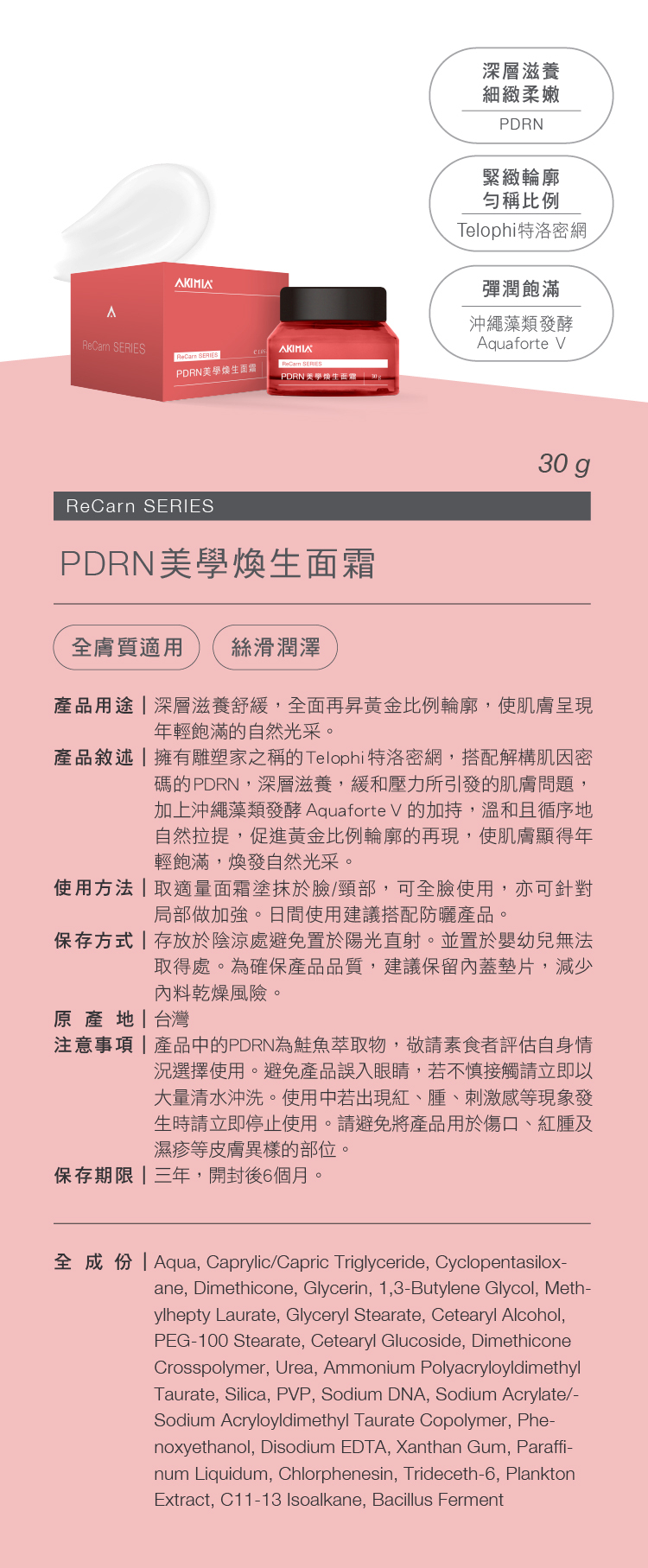 *產品中使用的PDRN為鮭魚萃取物,敬請素食者評估自身情況選擇使用。