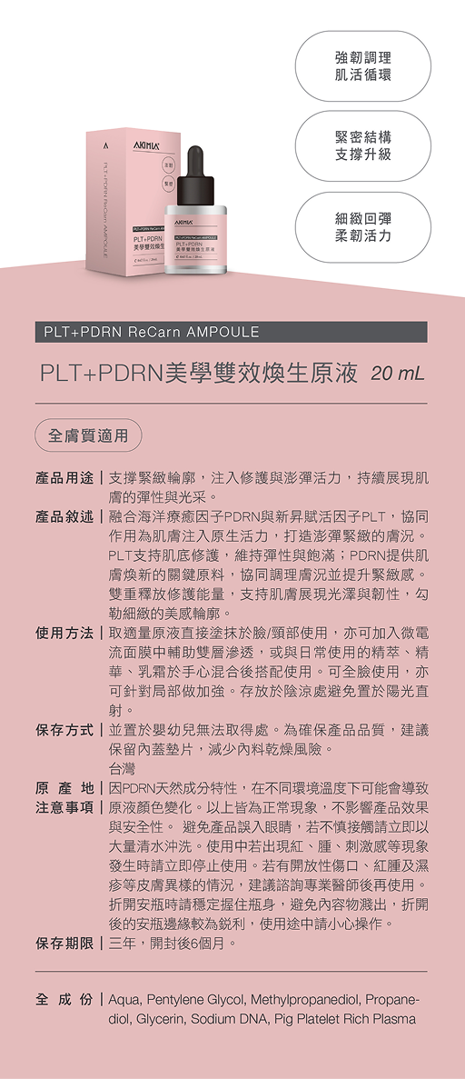 *產品中使用的PDRN為鮭魚DNA萃取物,敬請素食者評估自身情況選擇使用。