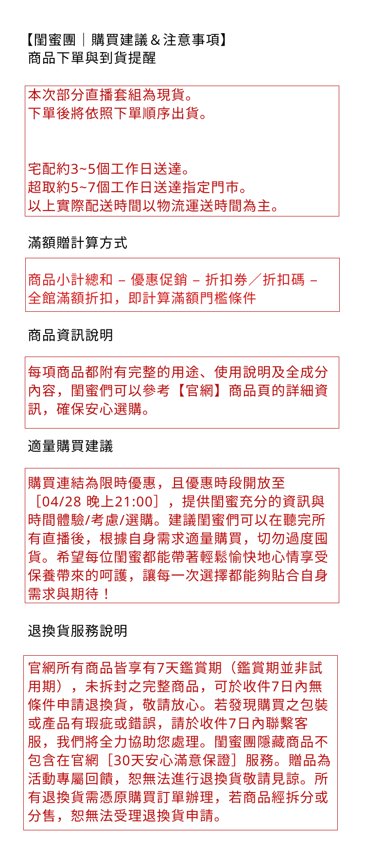 *滿額贈計算方式為:商品小計總和−優惠促銷−折扣券/折扣碼−全館滿額折扣,即計算達滿額門檻條件*